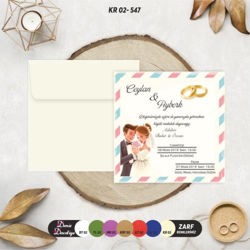 15 X 15 1000 ADET GELİN DAMAT FİGÜRLÜ KREM ZARFLI DÜĞÜN-NİŞAN DAVETİYESİ